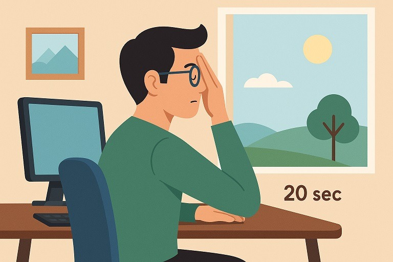 Make blinking a habit during screen time—your eyes need moisture. Take regular breaks by following the 20-20-20 rule: every 20 minutes, look 20 feet away for 20 seconds. This simple routine helps prevent dryness, relaxes your eye muscles, and supports long-term eye comfort—something we often recommend to clients at Not Another Eye Store who spend hours at a desk.